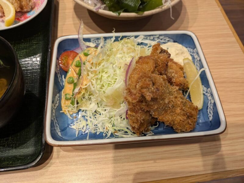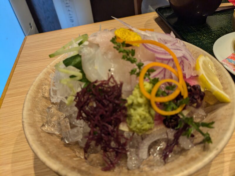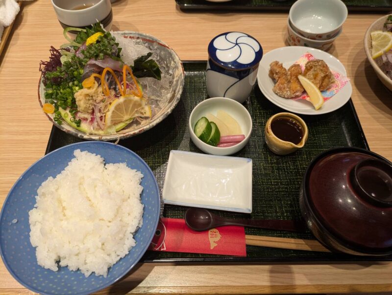 主人はアジのお刺身(たたき?)とアジフライのセットにしていました!こちらもボリューム満点でなおかつ美味しい。