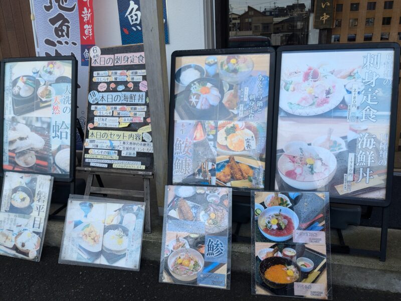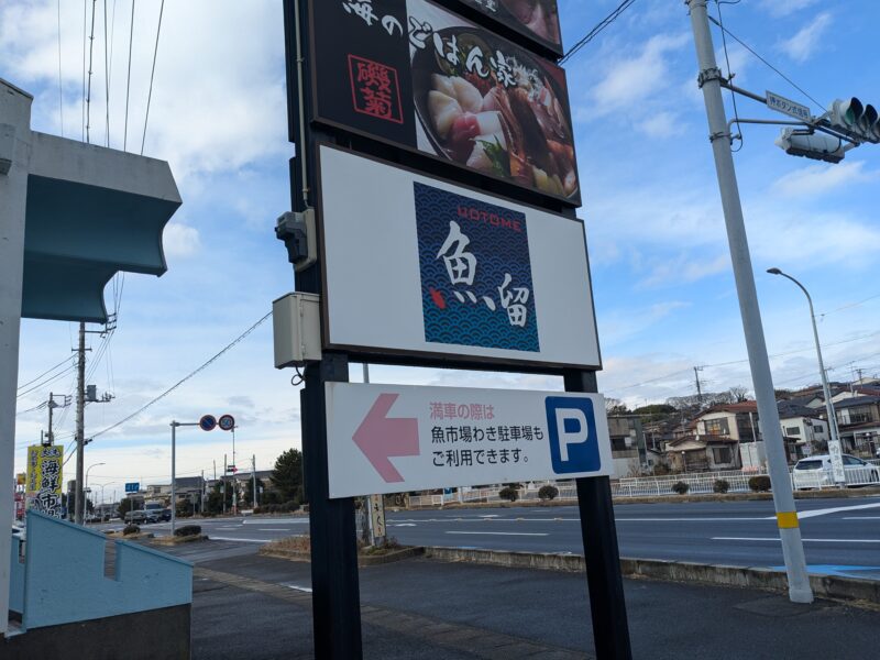 まず、魚留商店は、この看板が目印だよ〜!駐車場はあるけれど、結構埋まっちゃうから私達は魚市場わき駐車場に車を止めました!